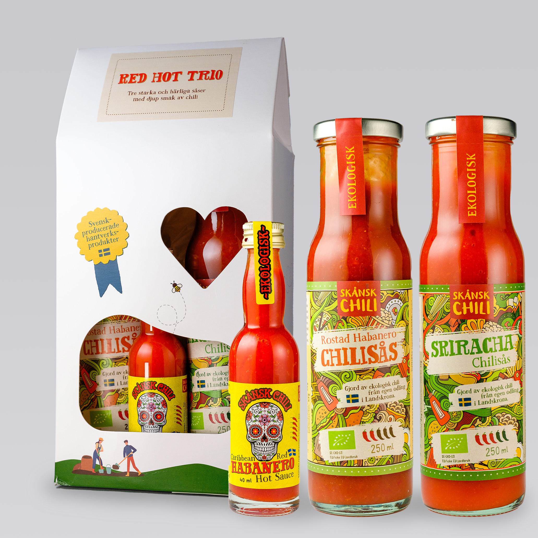 Rostad Habanero chilisås & Sriracha Chilisås Glasflaska 250 ml, samt Caribbean Red Hot Sauce 40 ml